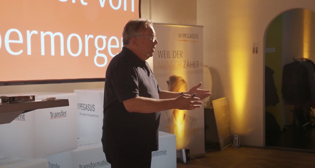 Vor geladenen Gästen, darunter Gewerkschaftern, Betriebsräten, Unternehmern und Politikern, referierte Jörg Heynkes bei der MYPEGASUS 30 Jahre Jubiläumsfeier in Frankfurt über die anstehenden technologischen und gesellschaftlichen Transformationsprozesse.