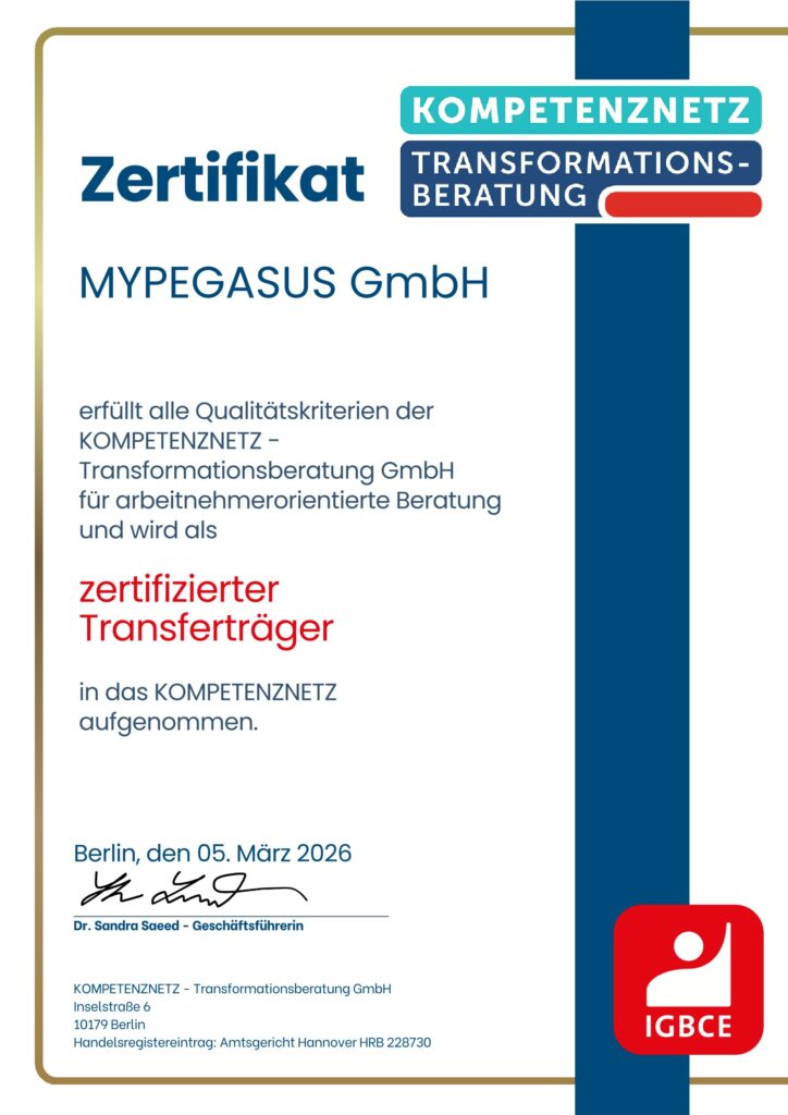 IG BCE: MYPEGASUS als zertifizierter Träger aufgenommen